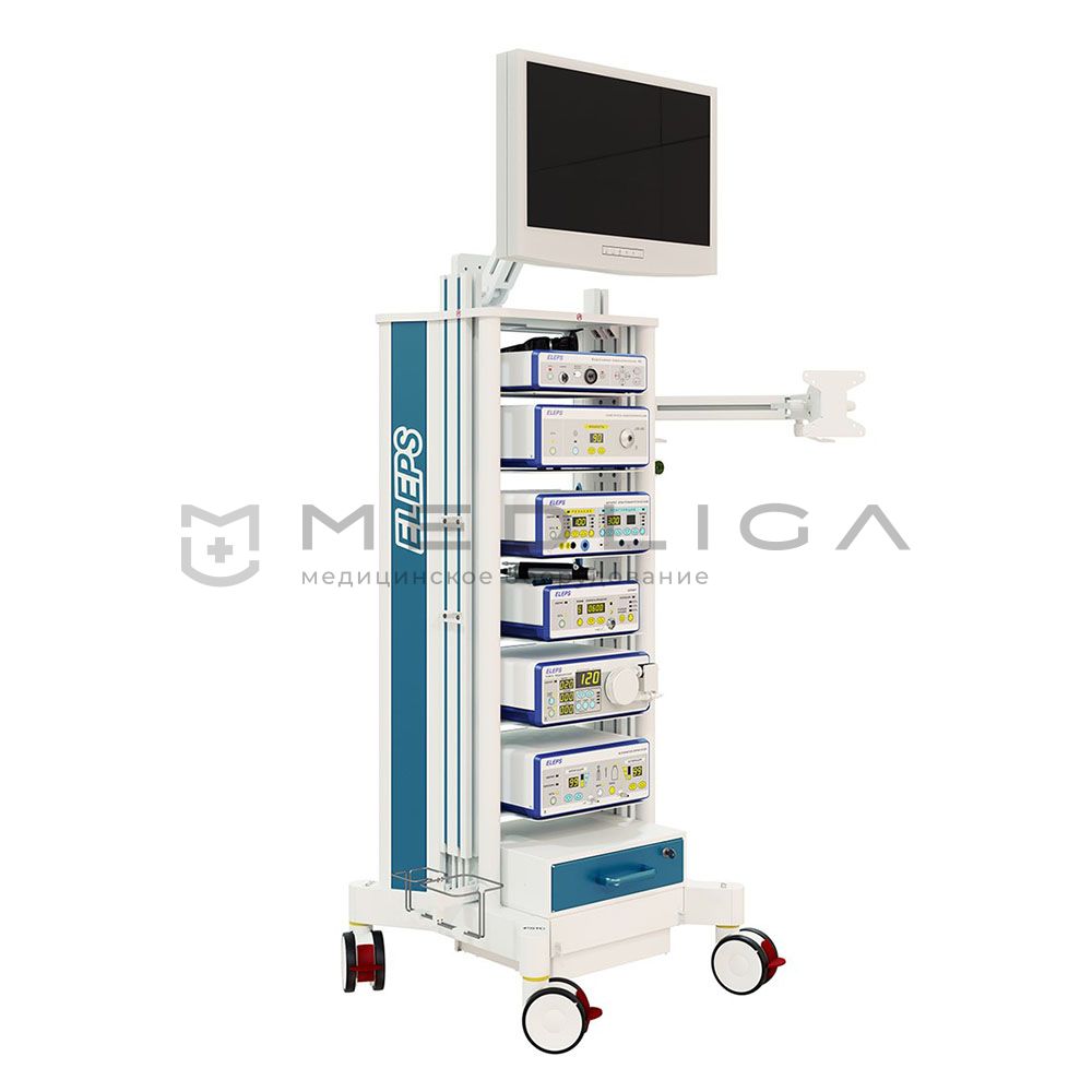 Артроскопическая стойка Элепс включает в себя инструменты для обеспечения высококачественной визуализации при проведении эндохирургической процедуры – цифровую видеокамеру, монитор, источники освещения и др. Специальная стойка обеспечивает компактное размещение всего набора оборудования и инструментария.