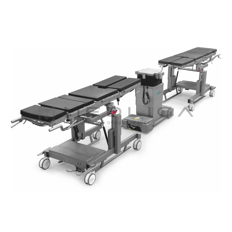 Системные столы имеют возможность снимать столешницу с лежащим на ней пациентом с колонны с помощью специального транспортера, что позволяет быстро приступить к следующей операции. Колонна стола может быть встраиваемой в пол либо перемещаемой с помощью транспортера или собственных колес.