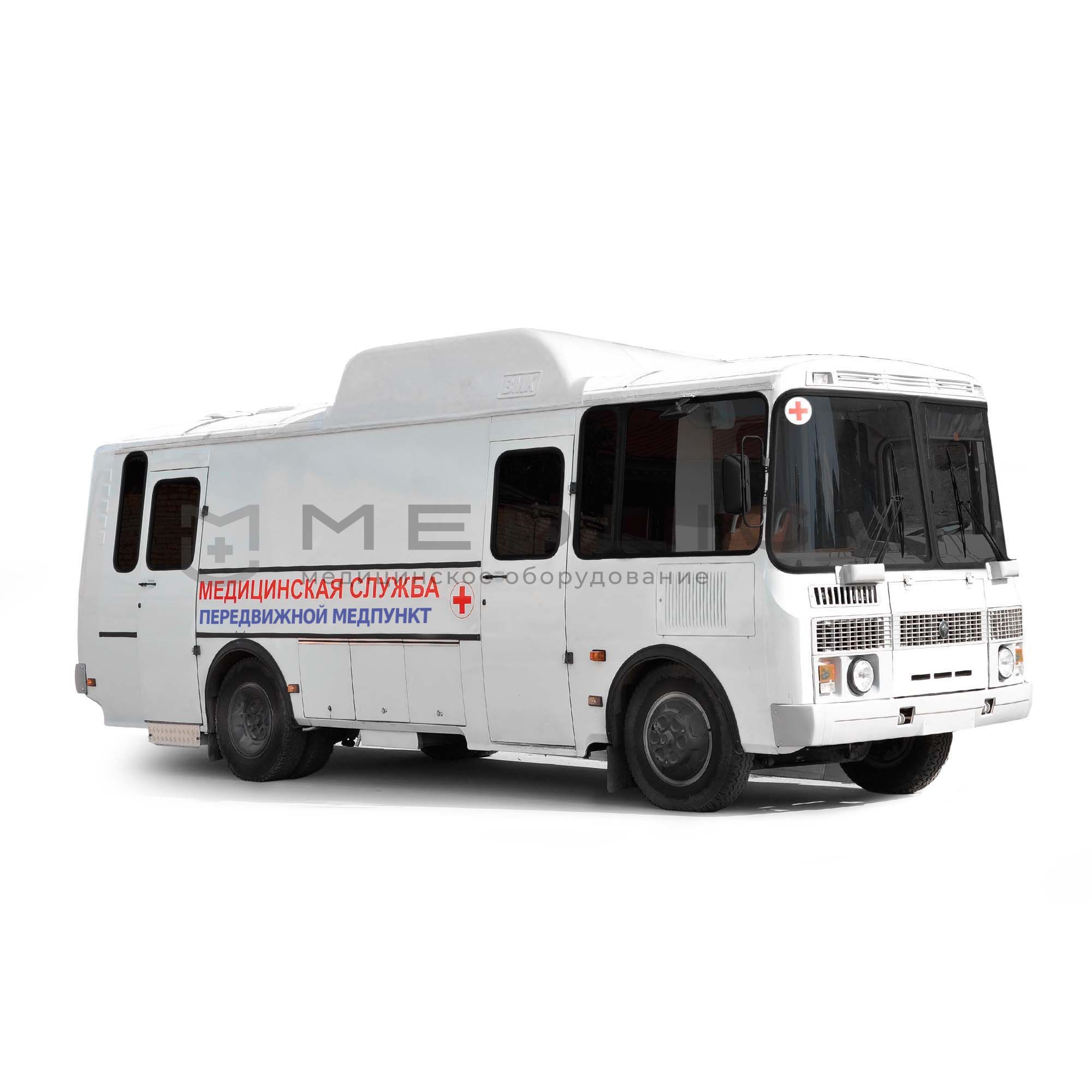Передвижные медицинские комплексы «Передвижной медпункт» ВМК-3033 -07 на базе автобуса ПАЗ-32053 и ВМК-30331-07 на базе автобуса ПАЗ- 4234 предназначены для медицинского обслуживания жителей , городских, сельских и отдаленных районов, оказания первичной медицинской помощи населению при несчастных случаях и повреждениях, диагностики и лечения наиболее частых заболеваний, обслуживания беременных, проведения вакцинаций, проведения физиотерапевтических процедур в выездных условиях и многое другое.