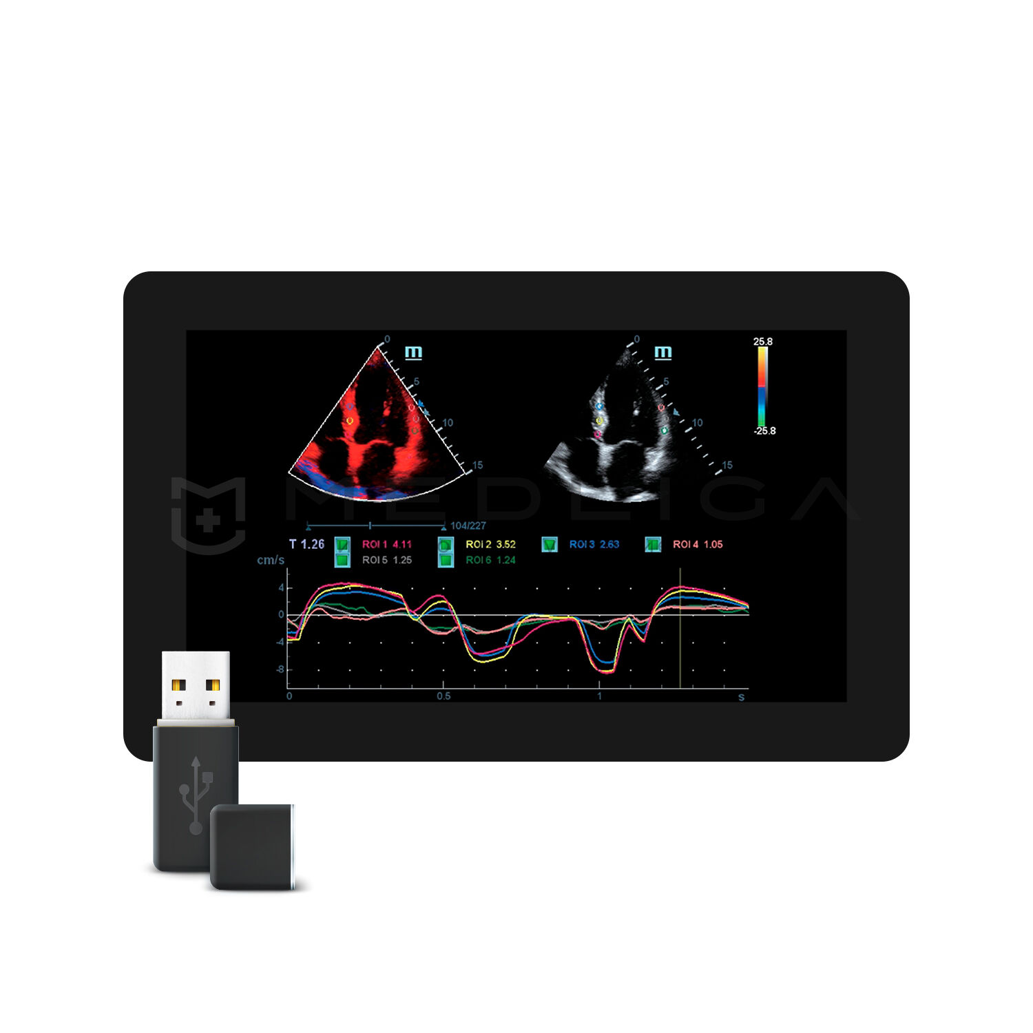 Для эхокардиографии используются секторные фазированные датчики и дополнительные допплеровские режимы с целью исследования сердечной деятельности.